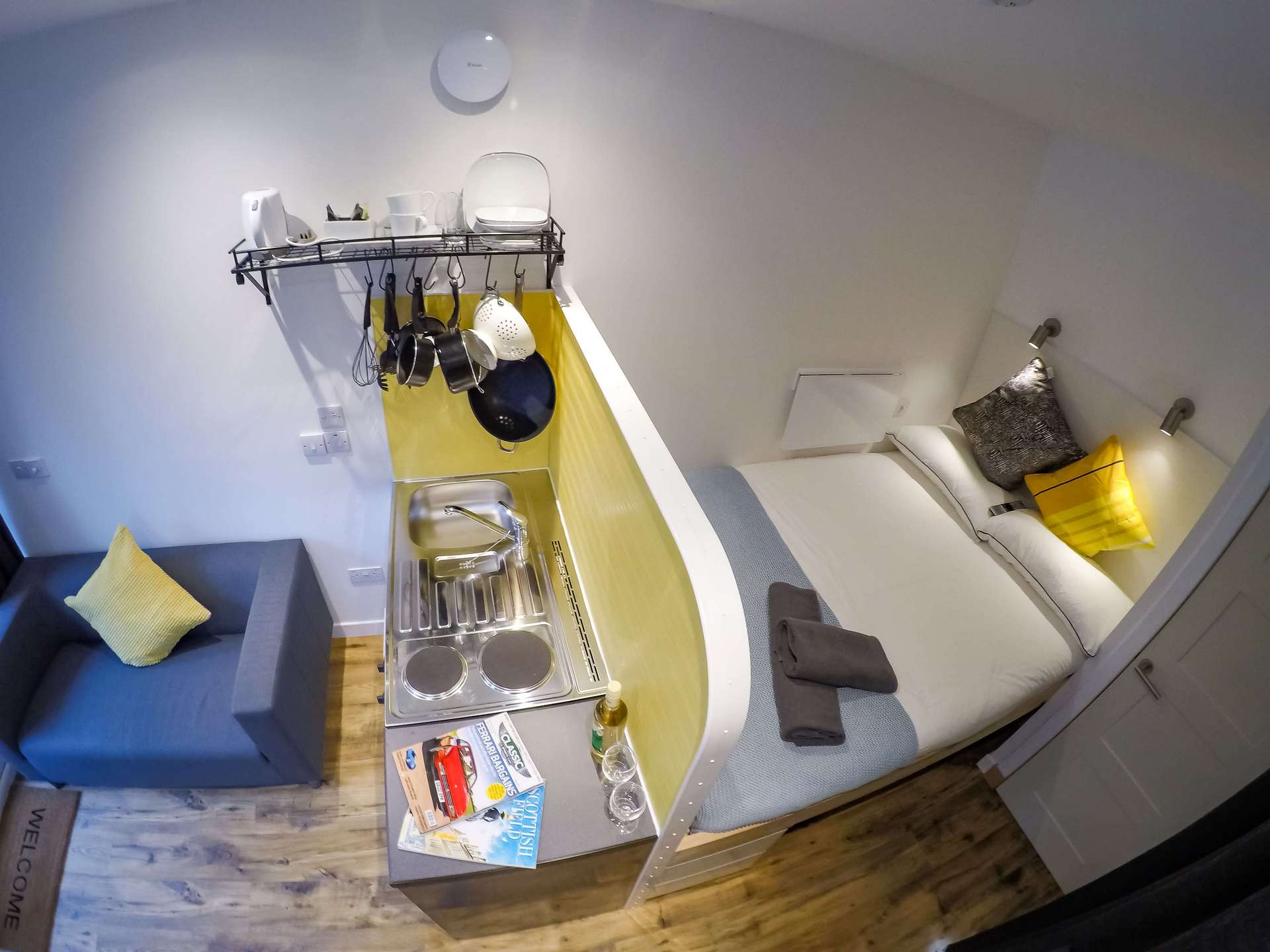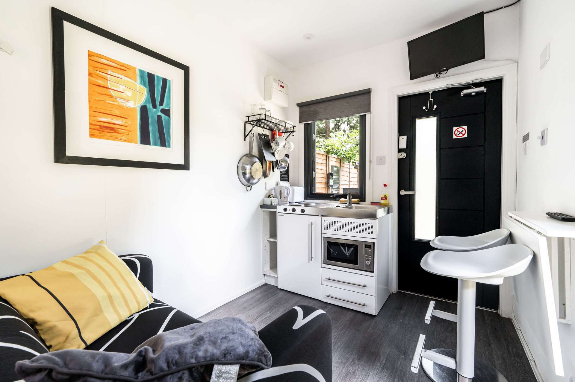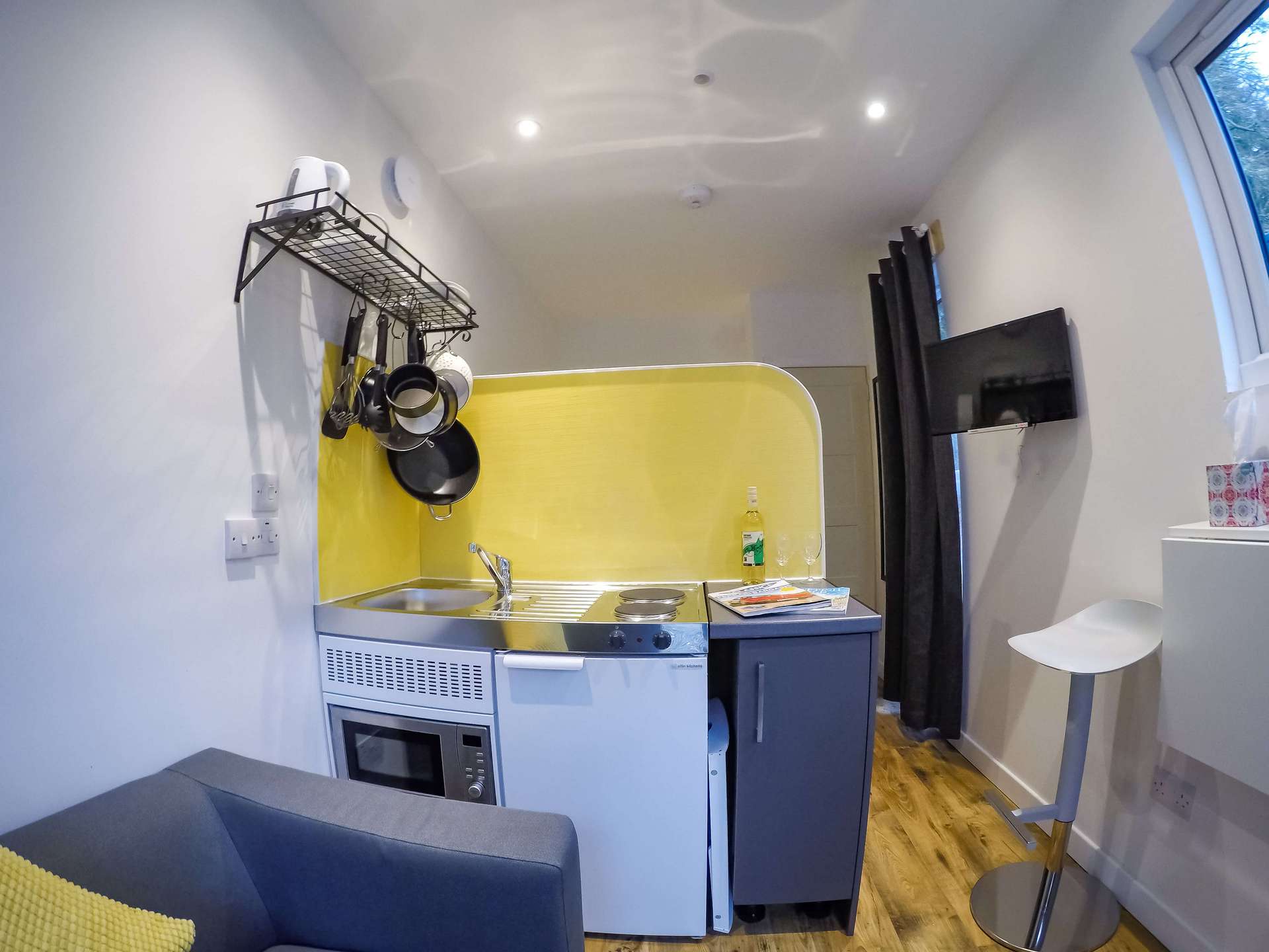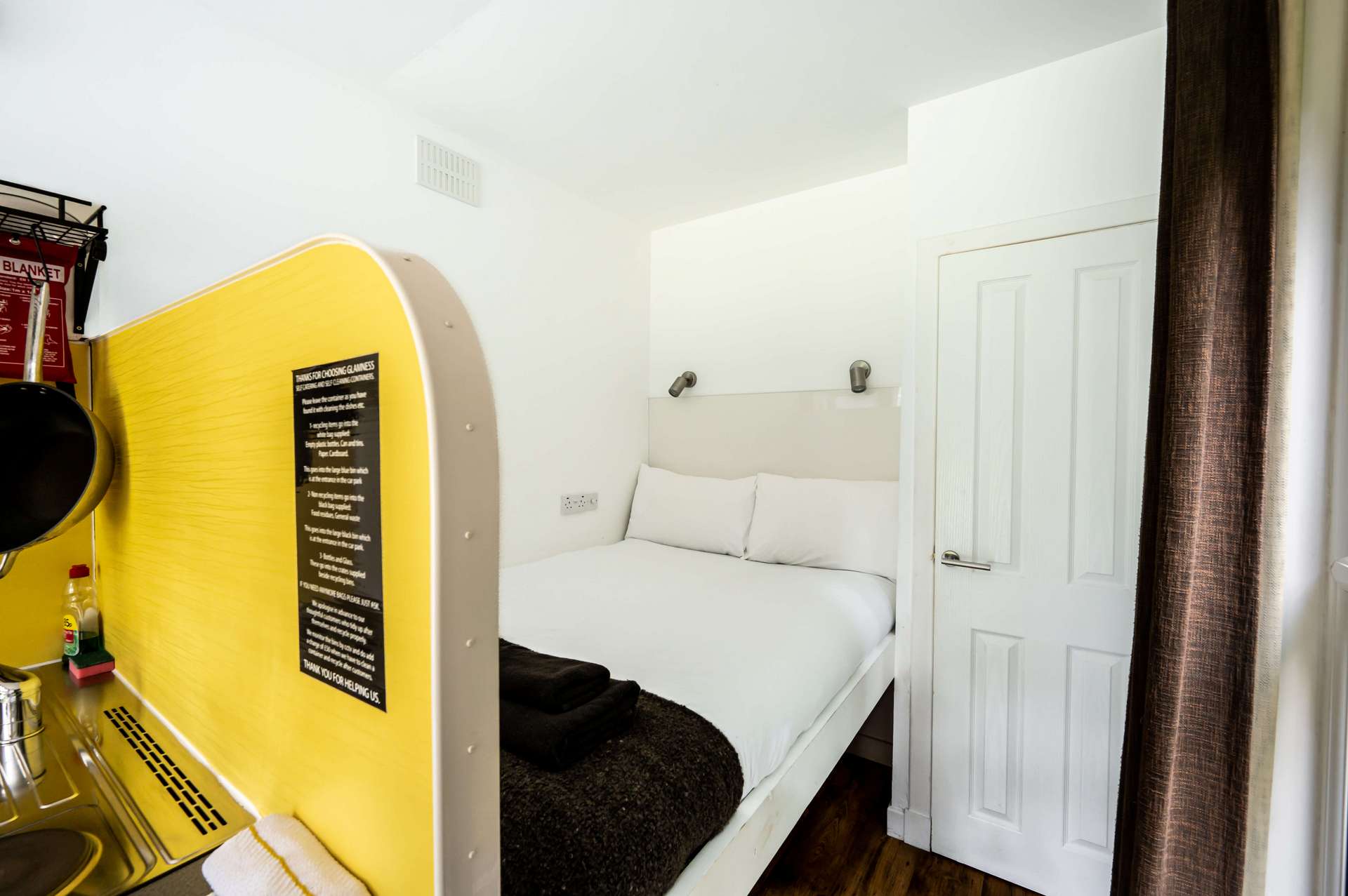 Your Containers have fresh towels, toiletries, tea and coffee facilites, along with a kitchenette and all utencils and central heating. We also offer a commnual barbecue.